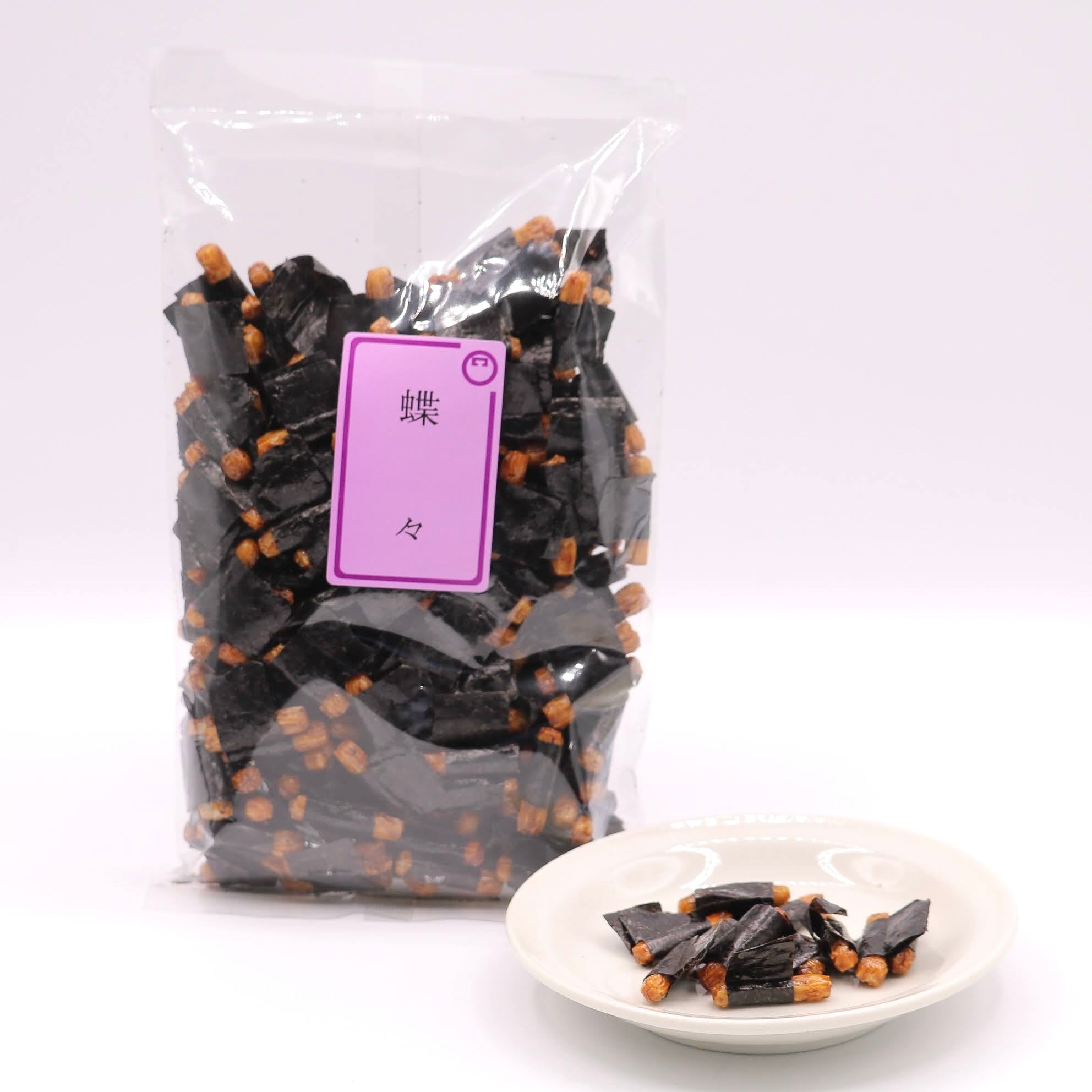 小さめのお煎餅に、一つずつ丁寧に海苔を巻いた上品な商品です。