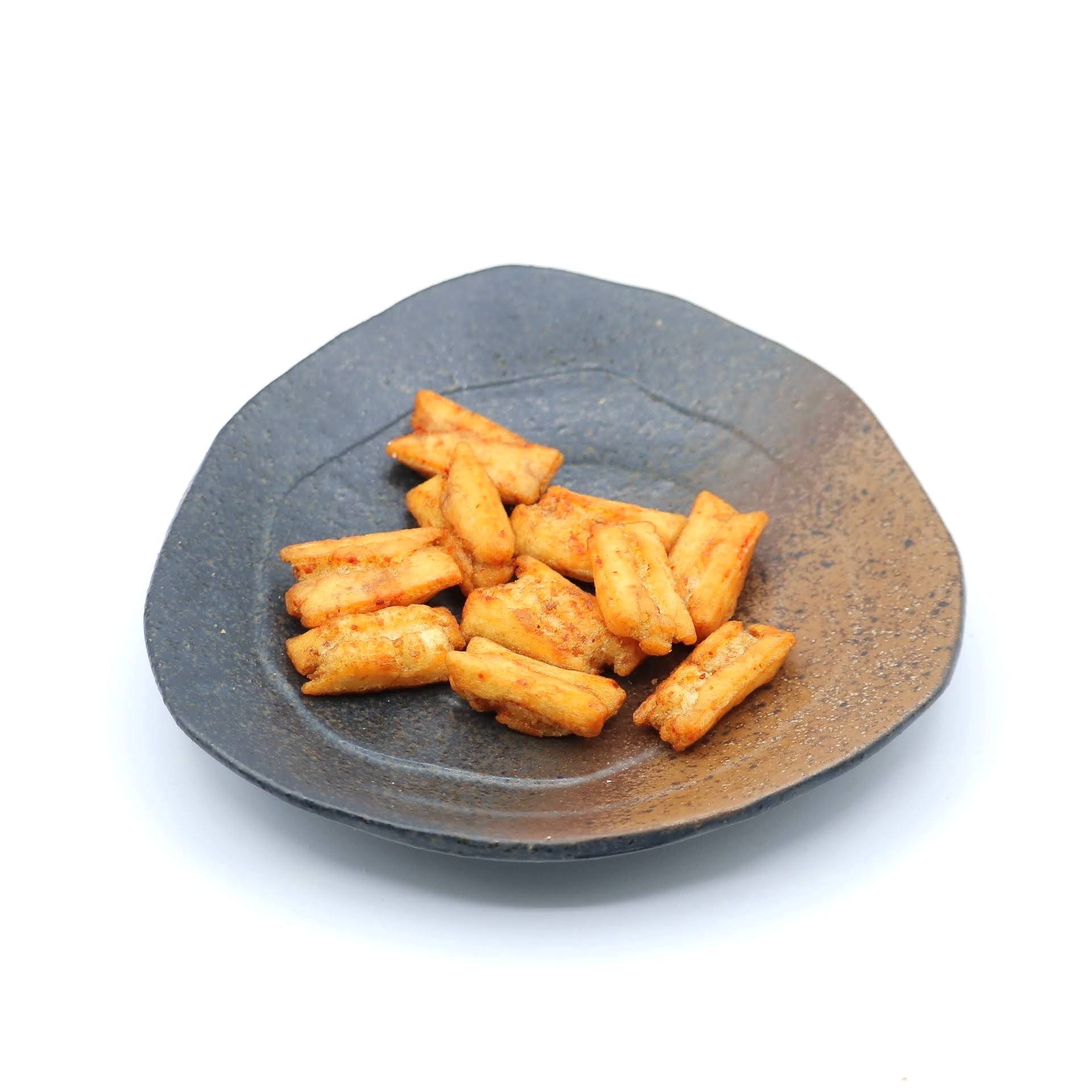 少し甘めの味付けの煎餅に、一味唐辛子でアクセントをつけた煎餅です。