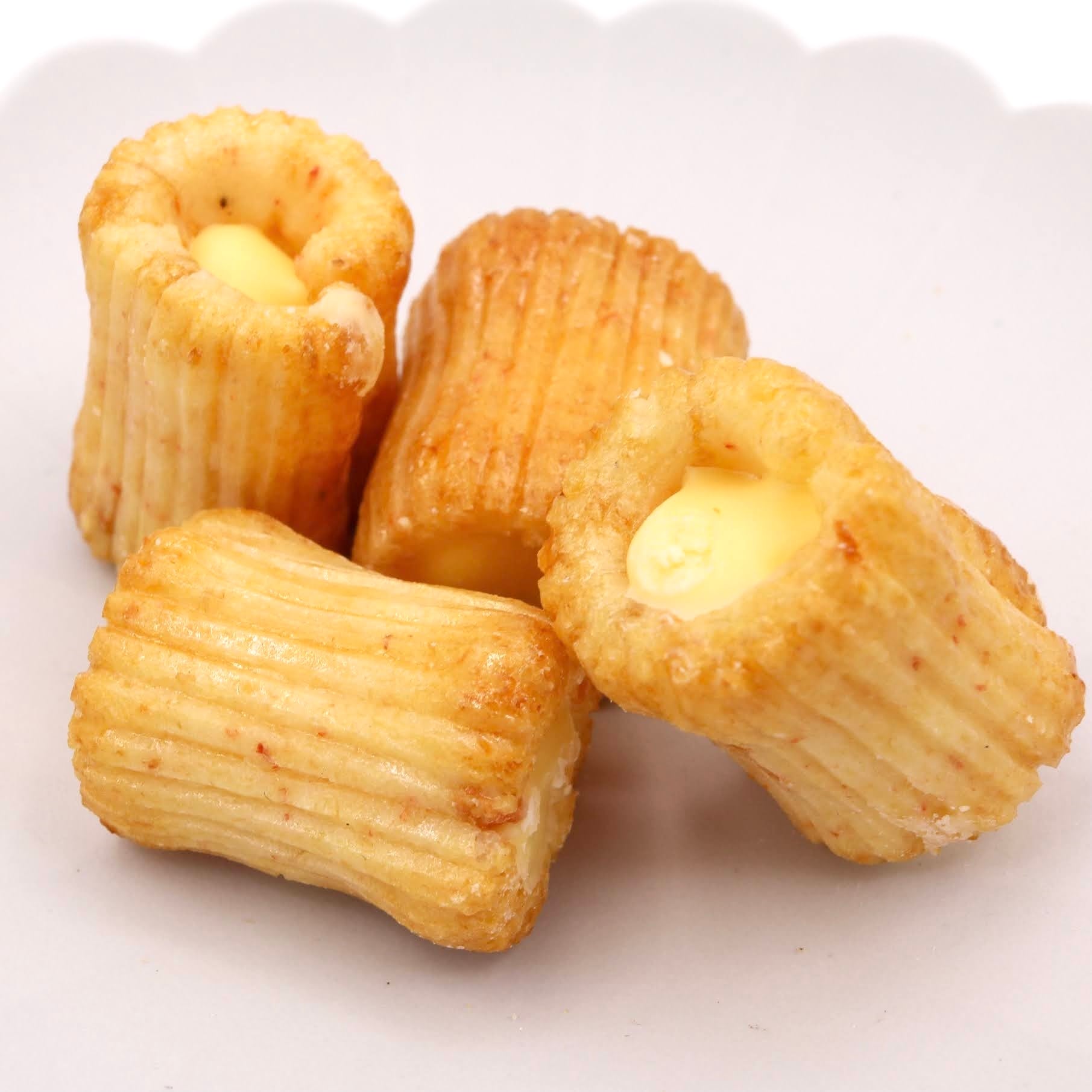 えびせんベースの筒状のお煎餅の中に、チーズをいれた商品です。