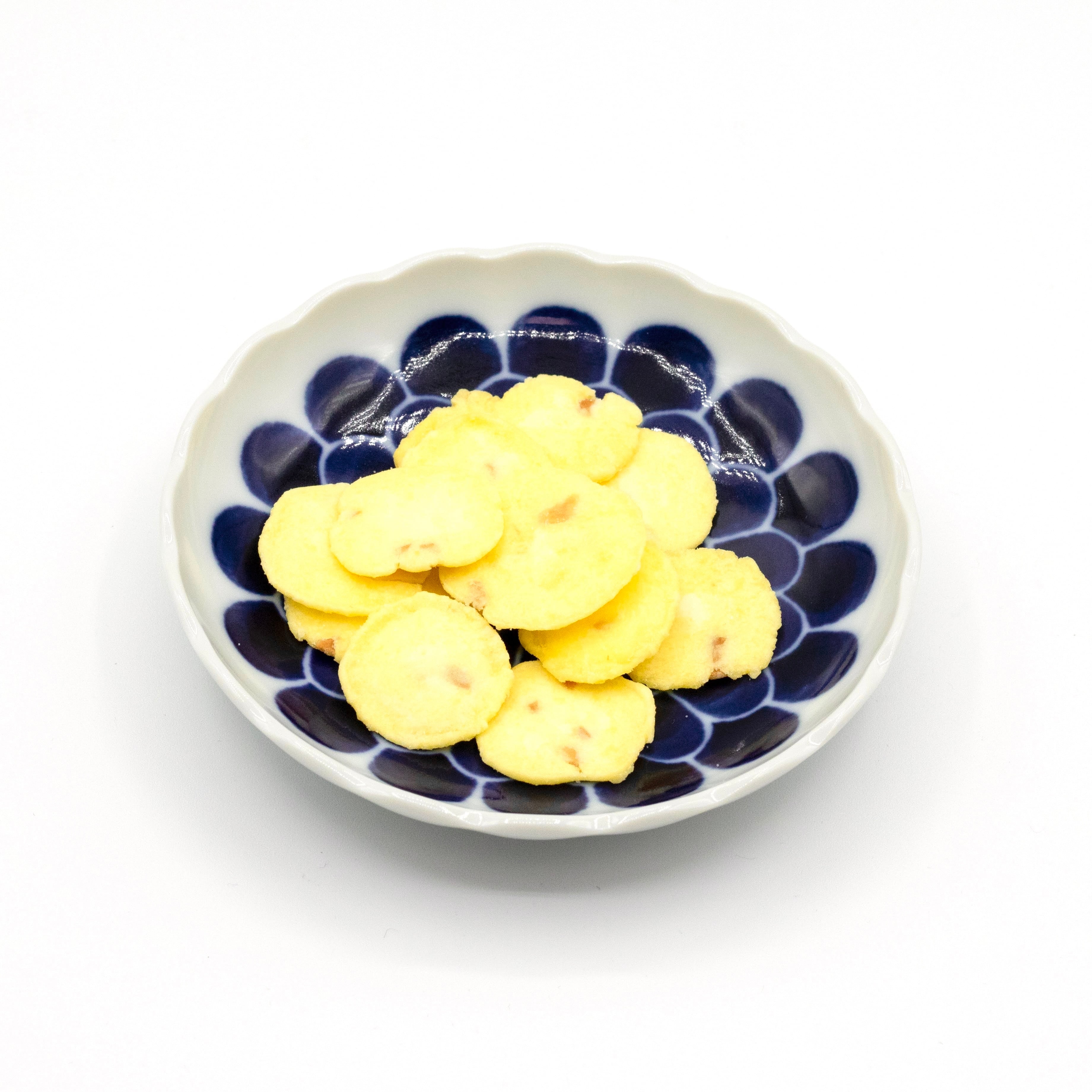 濃厚なチーズの煎餅にピーナッツを砕いたものが練り込んであります。