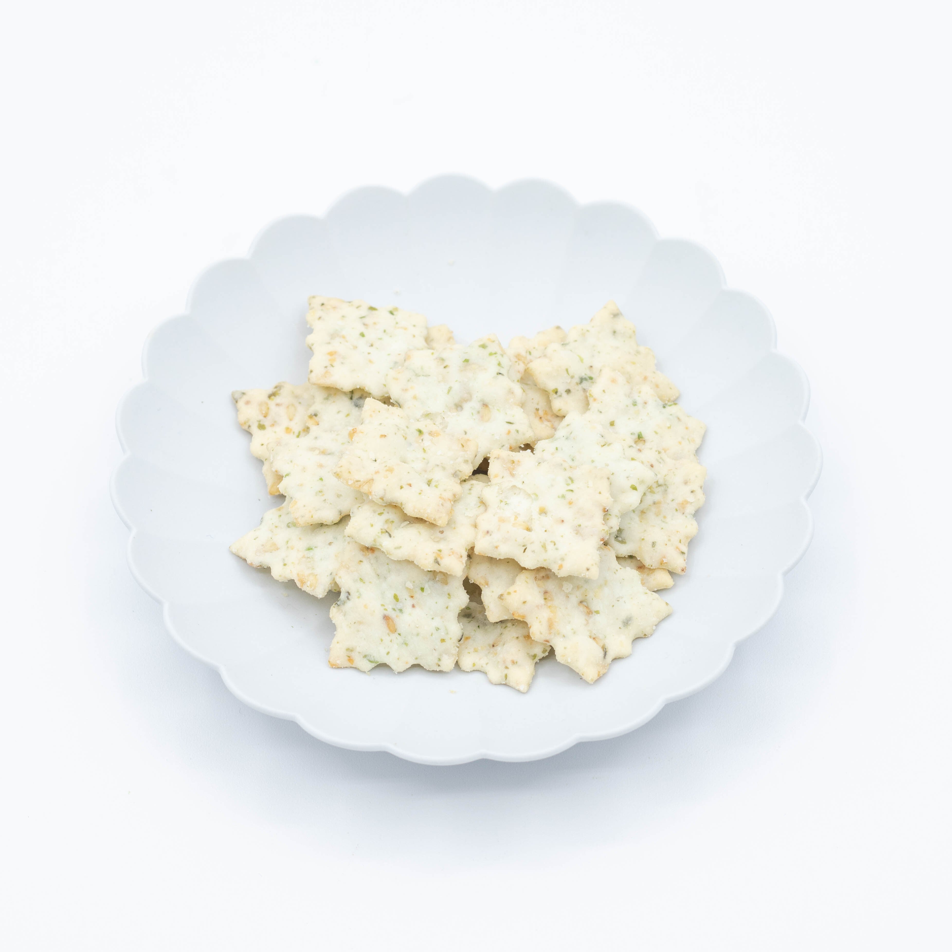 胡麻がたっぷりのクラッカーにわさびパウダーをまぶしました。
